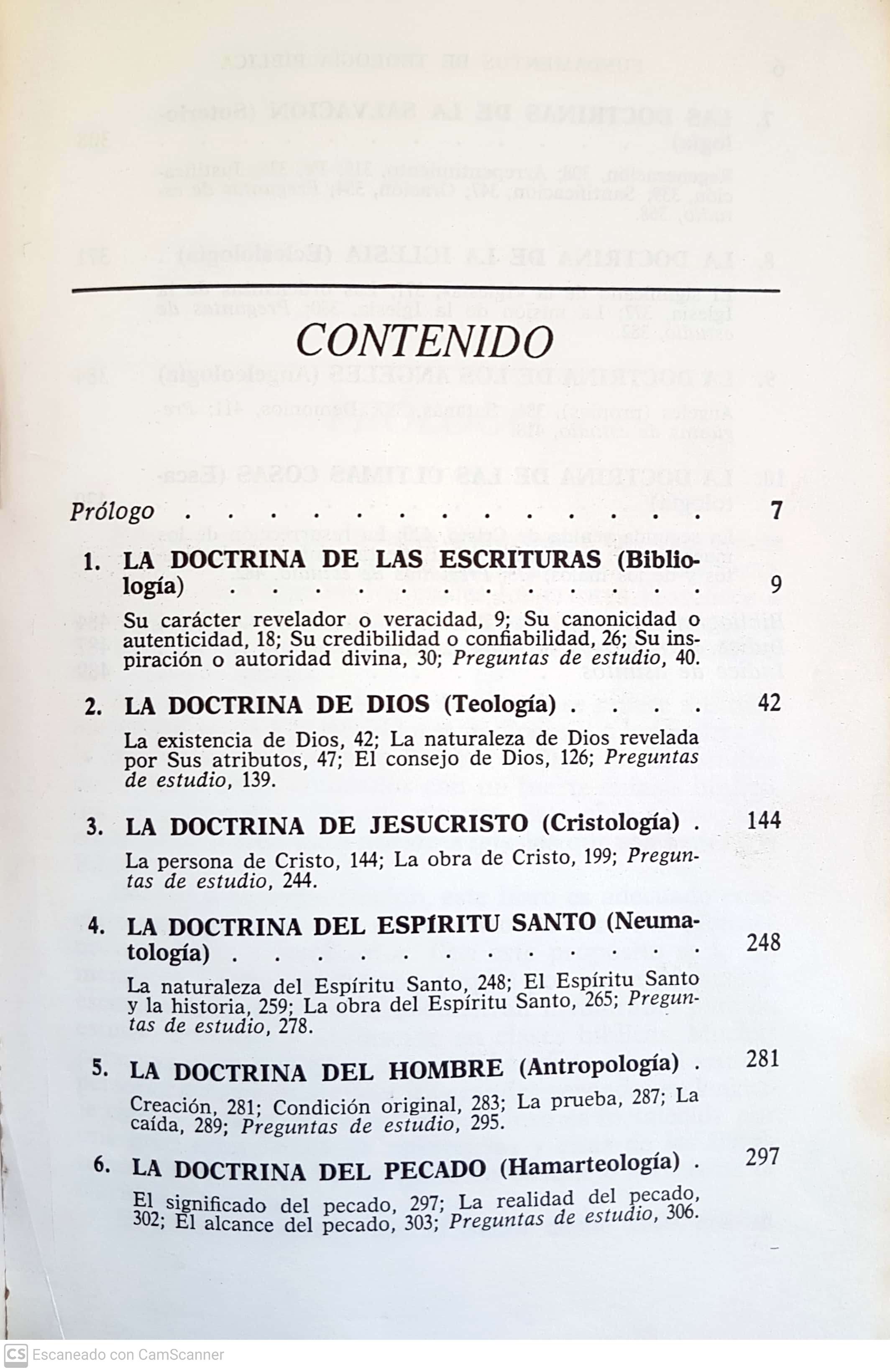 Trata de los siguientes temas doctrinales: Dios, las Escrituras, Jesucristo, Espíritu Santo, Hombre, Pecado, Salvación, Iglesia, Ángeles y las Últimas Cosas.