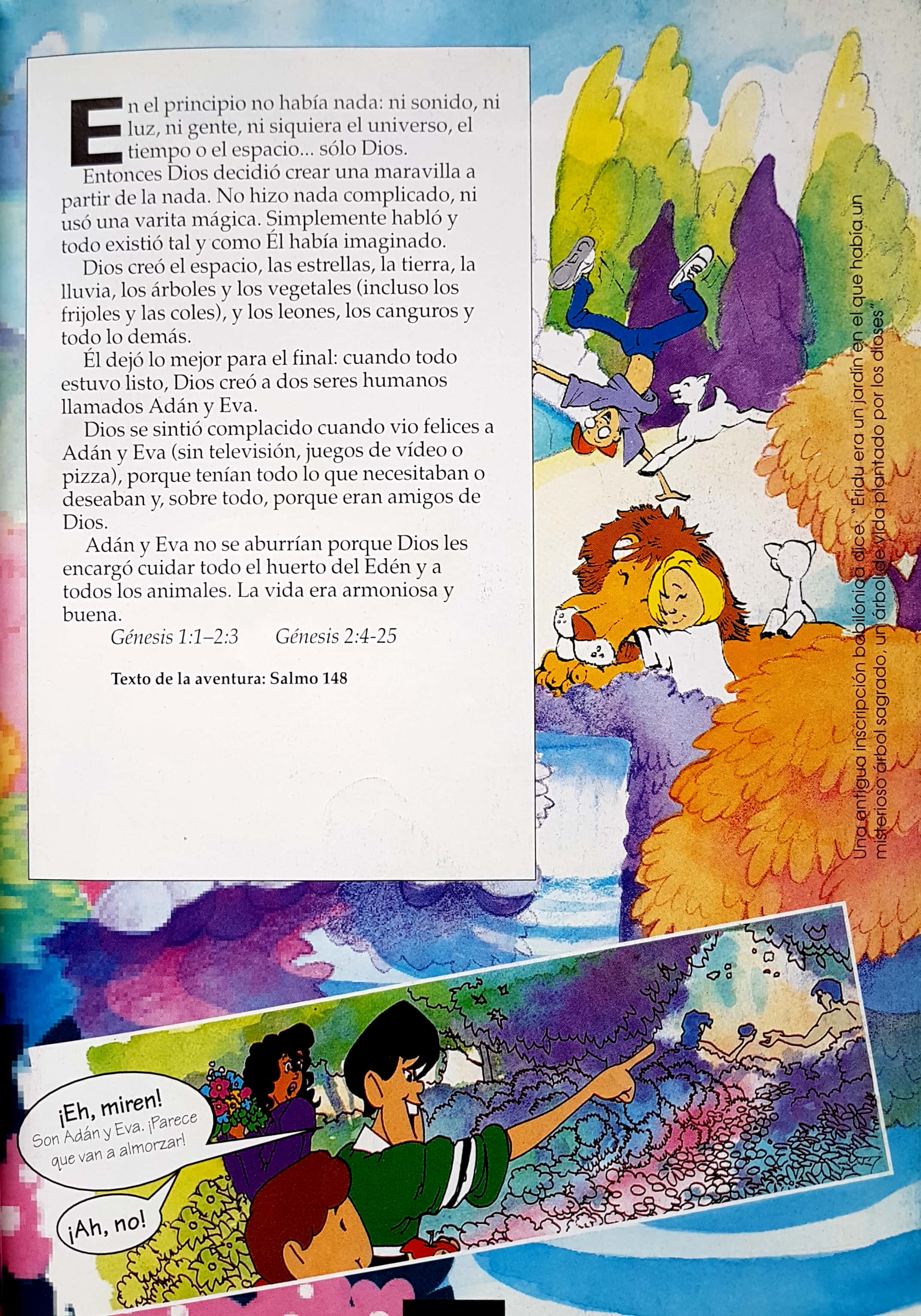 Un viaje electrónico a través de la Biblia desde el principio del mundo, el huerto del Edén, hasta el Apocalipsis. Contiene datos interesantes e informativos acerca de los tiempos bíblicos y sus personajes. Está realizado al estilo de las tiras cómicas ilustrado a todo color.