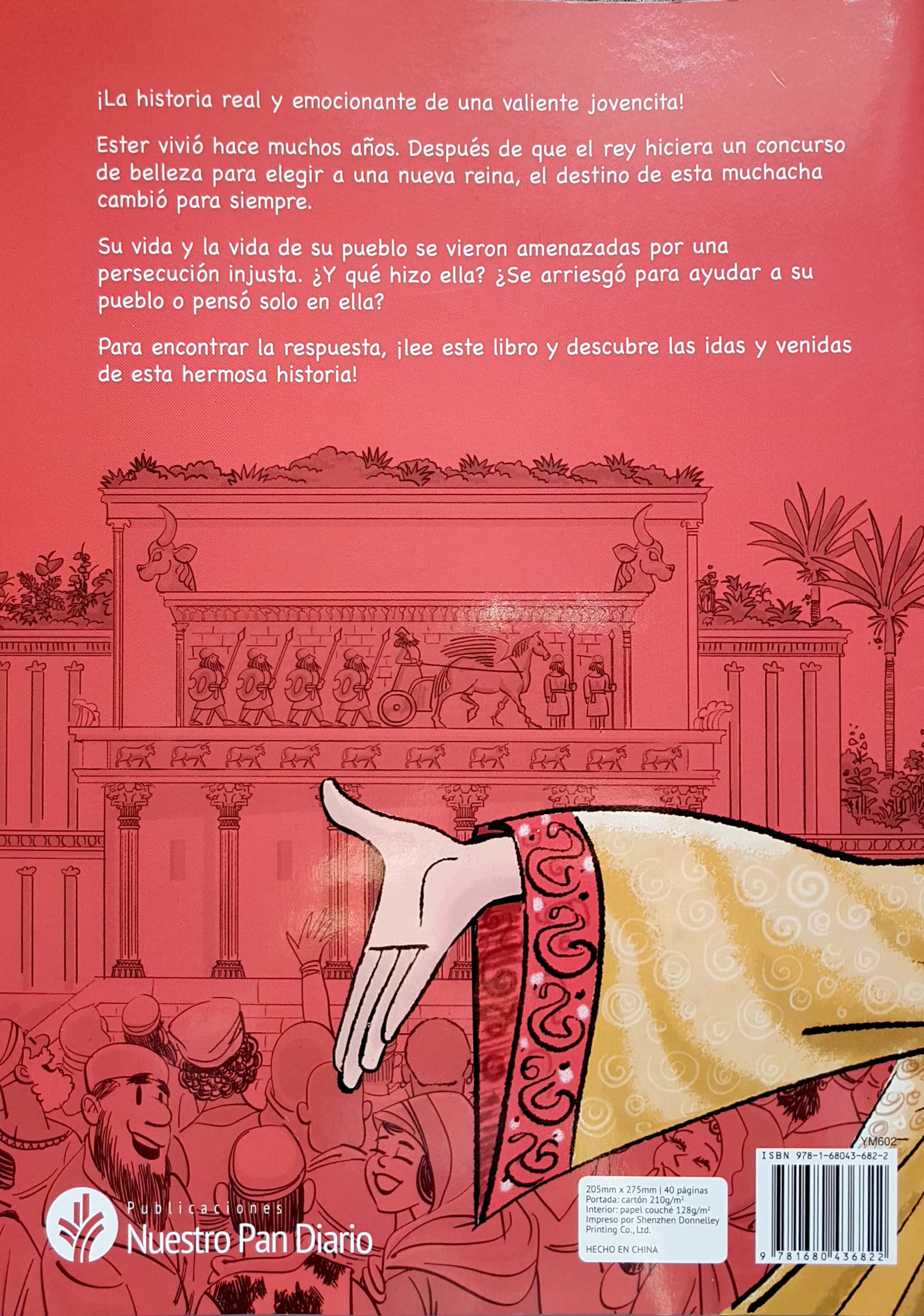 ¡La historia real y emocionante de una valiente jovencita! Ester vivió hace muchos años. Después de que el rey hiciera un concurso de belleza para elegir a una nueva reina, el destino de esta muchacha cambió para siempre. Su vida y la vida de su pueblo se vieron amenazadas por una persecución injusta. ¿Y qué hizo ella? ¿Se arriesgó para ayudar a su pueblo o pensó solo en ella?