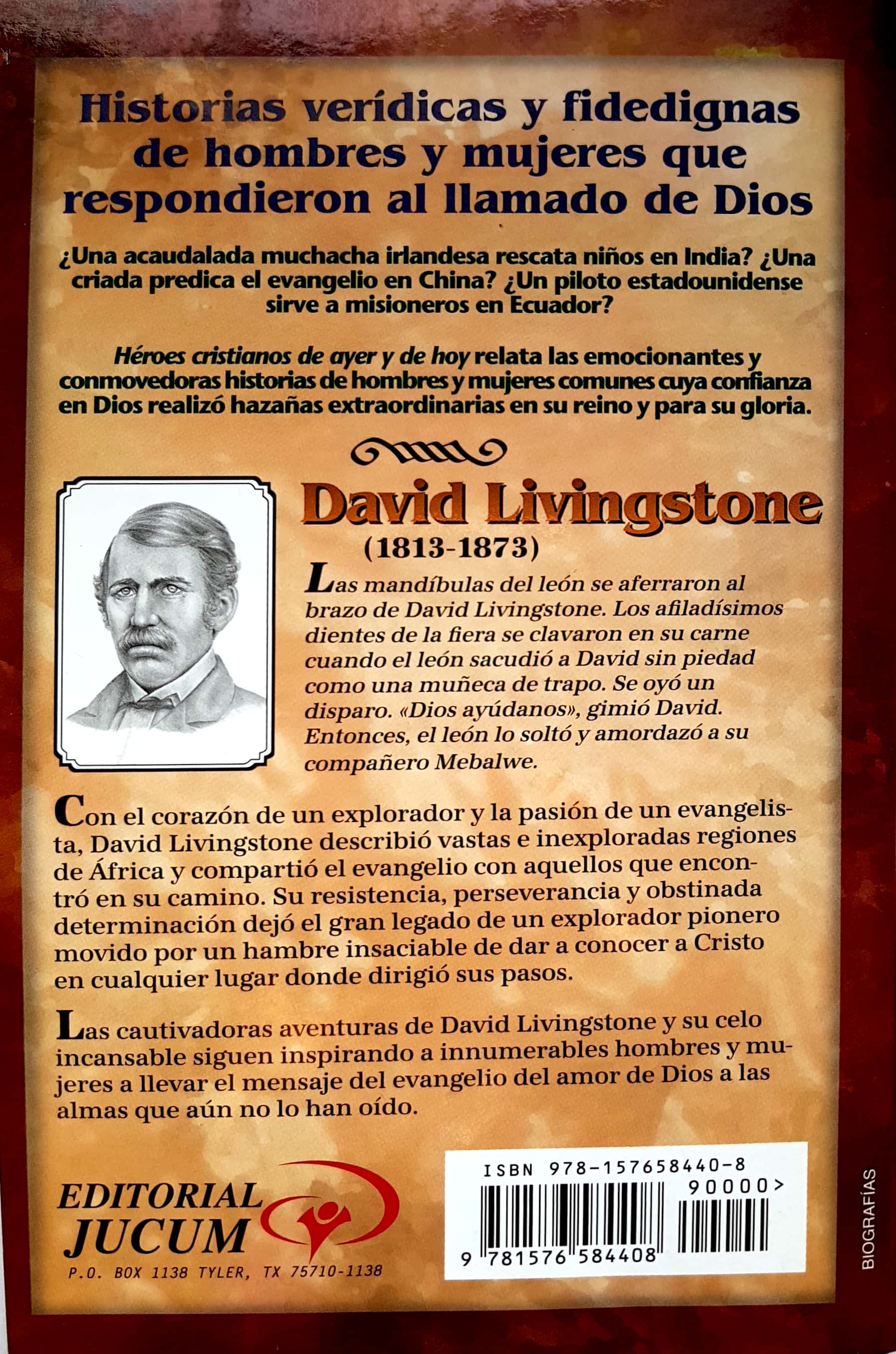 De la Serie: Héroes cristianos de ayer y hoy. La vida de David Livingstone, explorador y evangelista en África. Con el corazón de un explorador y la pasión de un evangelista, David Livingstone describió vastas e inexploradas regiones de Africa y compartió el evangelio con aquellos que encontró en su camino. Su resistencia, perseverancia y obstinada determinación dejó el gran legado de un explorador pionero movido por un hambre insaciable de dar a conocer a Cristo en cualquier lugar donde dirigio sus pasos.