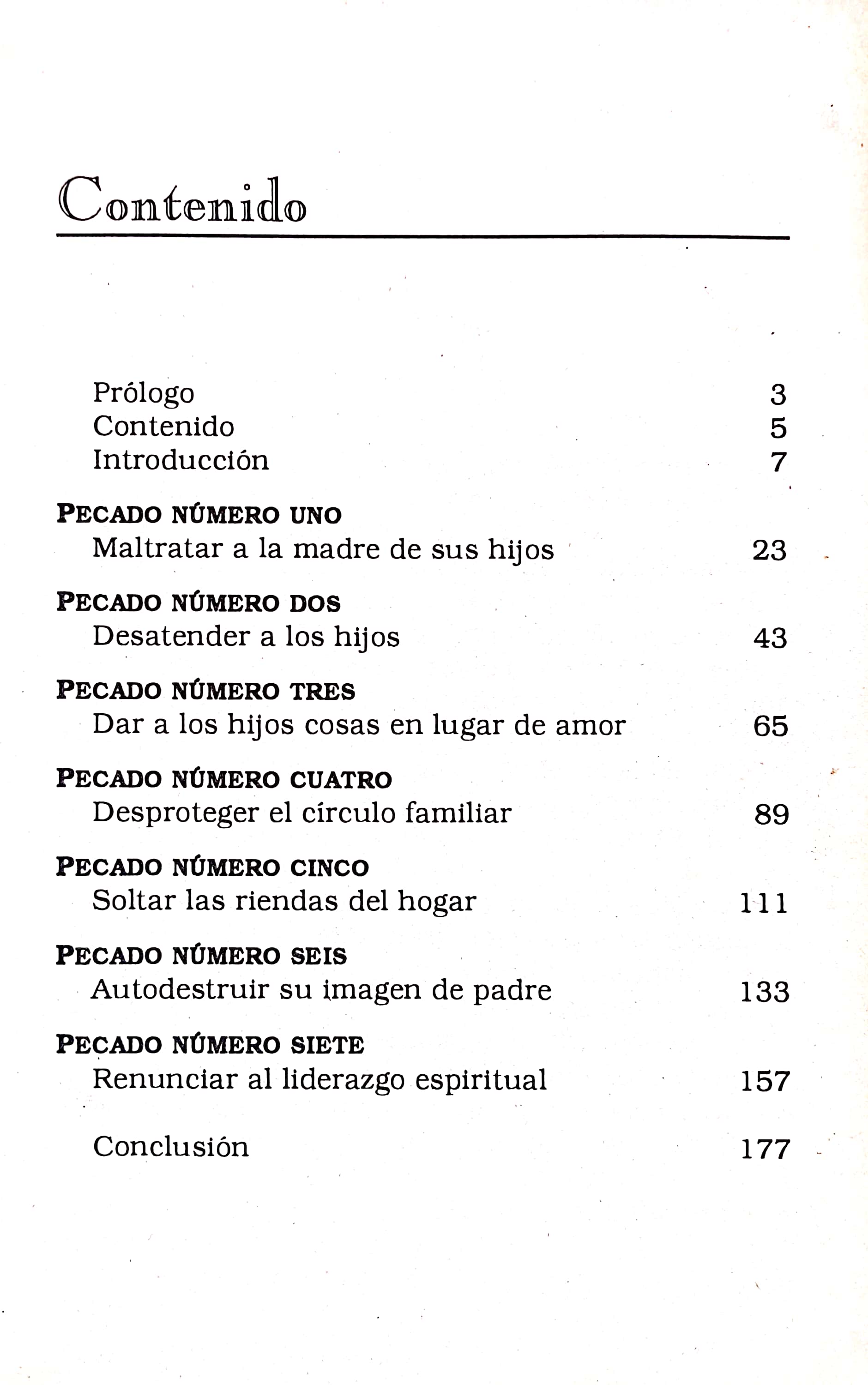 Según el autor, los errores de un padre, son siete; pero a pesar de ello ha conocido casos de padres fracasados y hogares destruidos que se han levantado y han llegado a ser modelos para otros.