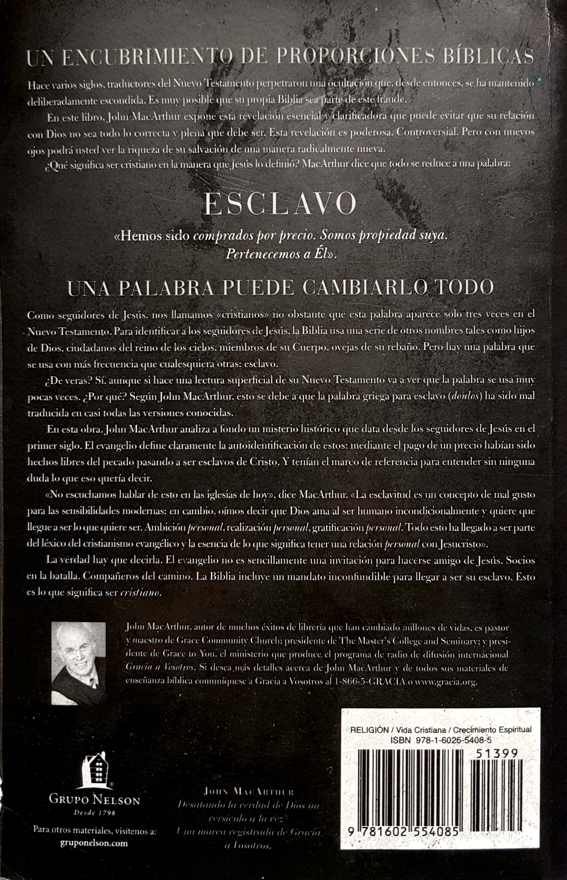 El autor y pastor Dr. John MacArthur revela una palabra crucial que revolucionará lo que significa el seguir a Jesús. Hemos sido comprados a un precio y ahora vivimos para Cristo como gente de su propia posesión. En este libro el autor utiliza profundas enseñanzas bíblicas y evaluaciones históricas para revelar una palabra olvidada que restaura la verdadera definición de la Biblia sobre la libertad del cristiano.