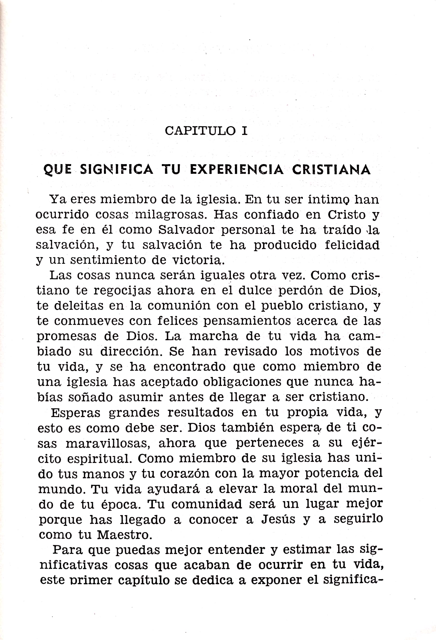 Esta obra pequeña, pero de valioso contenido puesto que trata de las relaciones que hay y que debe haber entre el nuevo creyente y su iglesia. Está escrito en estilo claro y sus capítulos abarcan los aspectos básicos de esas relaciones. El autor procura despertar en el nuevo miembro de la iglesia las responsabilidades adquiridas para con la misma.