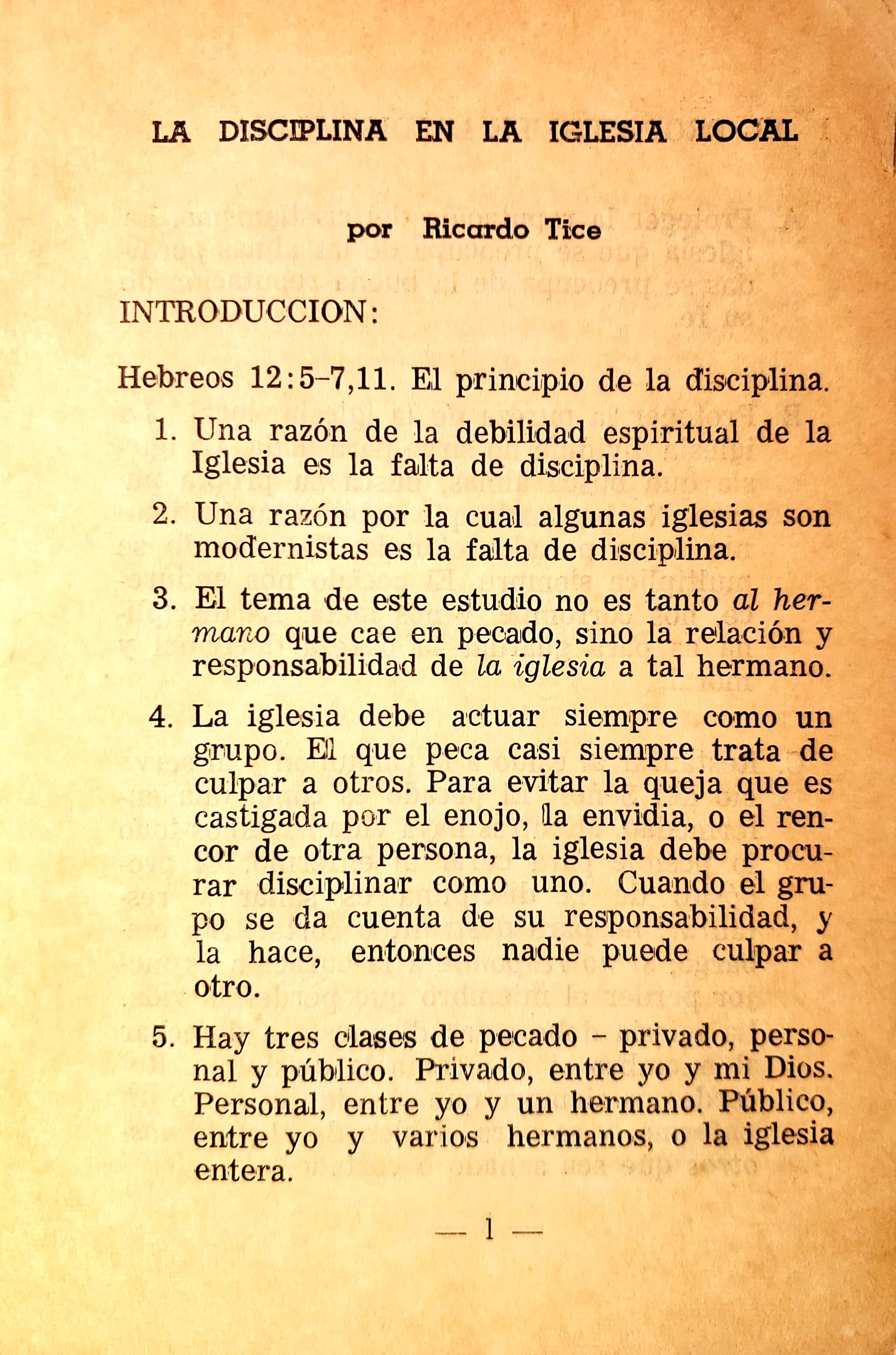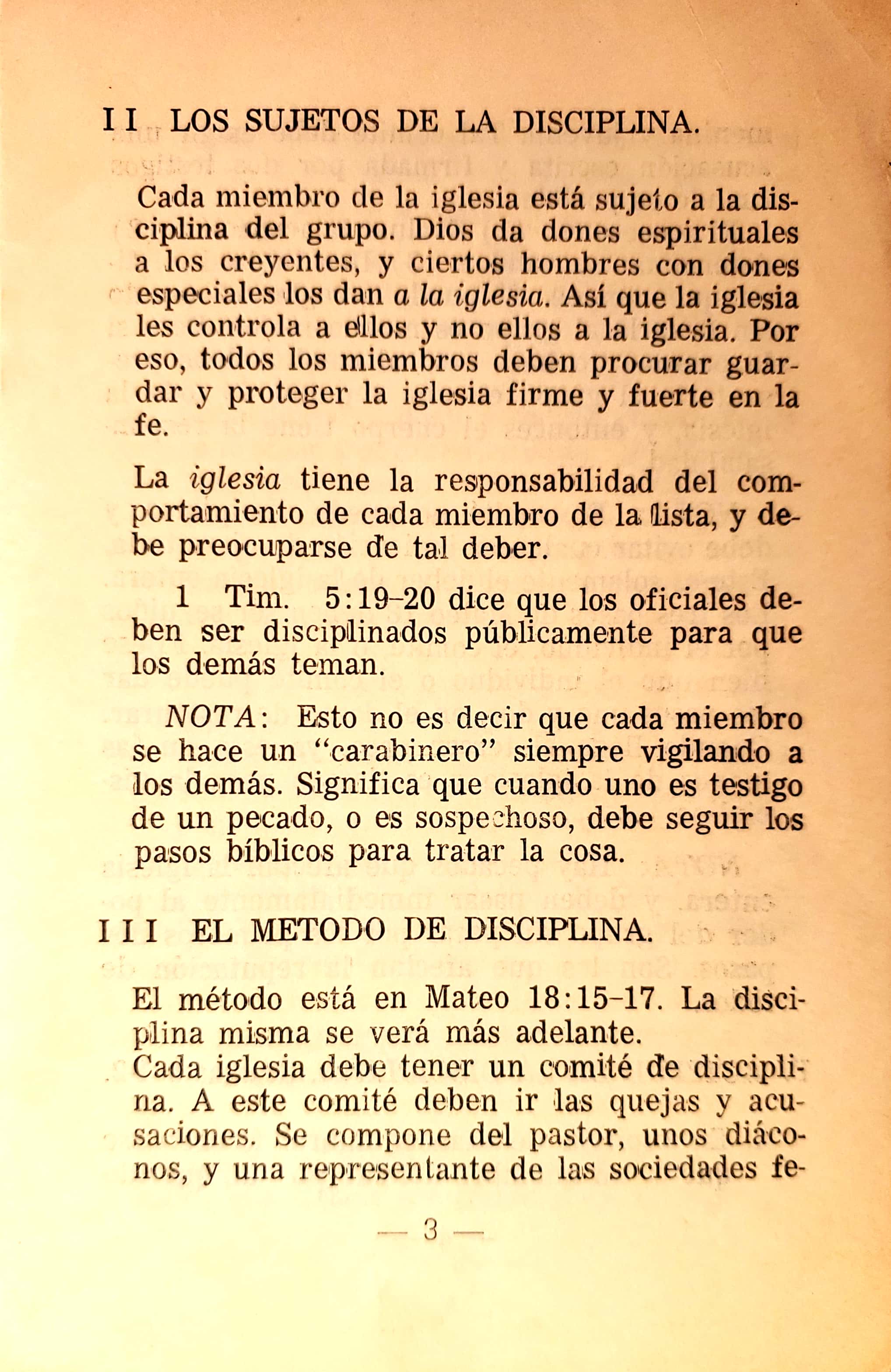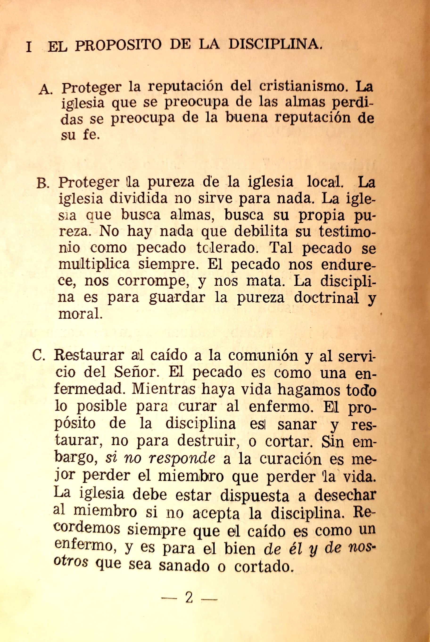 Un librito que enseña acerca de la disciplina bíblica para la iglesia. Estudia sus principios, su propósito, método, entre otros.