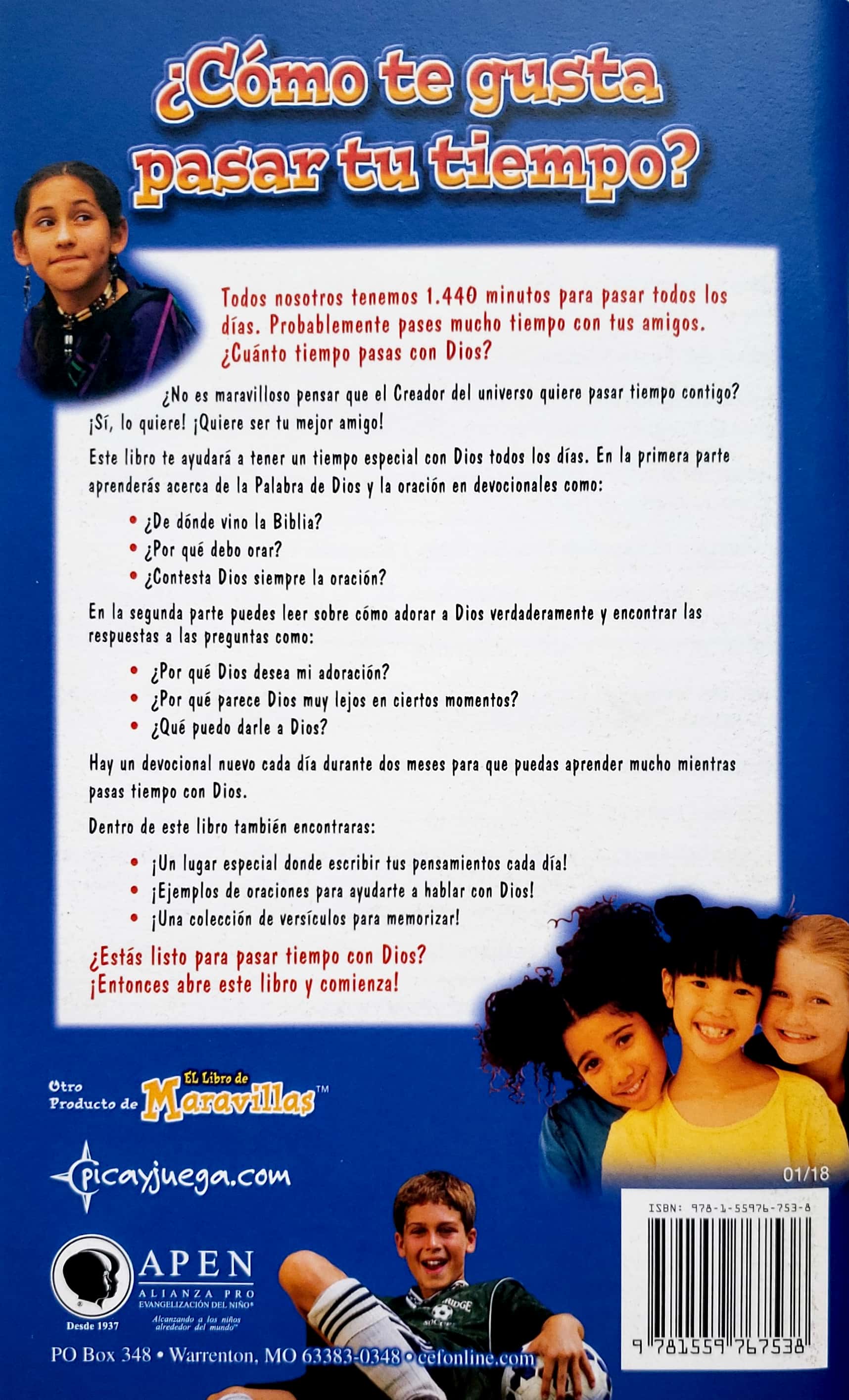 Todos nosotros tenemos 1.440 minutos para pasar todos los días. Probablemente pases mucho tiempo con tus amigos. ¿Cuánto tiempo pasas con Dios? ¿No es maravilloso pensar que el Creador del universo quiere pasar tiempo contigo? ¡Sí, lo quiere! ¡Quiere ser tu mejor amigo! Este libro te ayudará a tener un tiempo especial con Dios todos los días. En la primera parte aprenderás acerca de la Palabra de Dios y la oración en devocionales como: ¿De dónde vino la Biblia?, ¿Por qué debo orar?, ¿Contesta Dios siempre la oración?