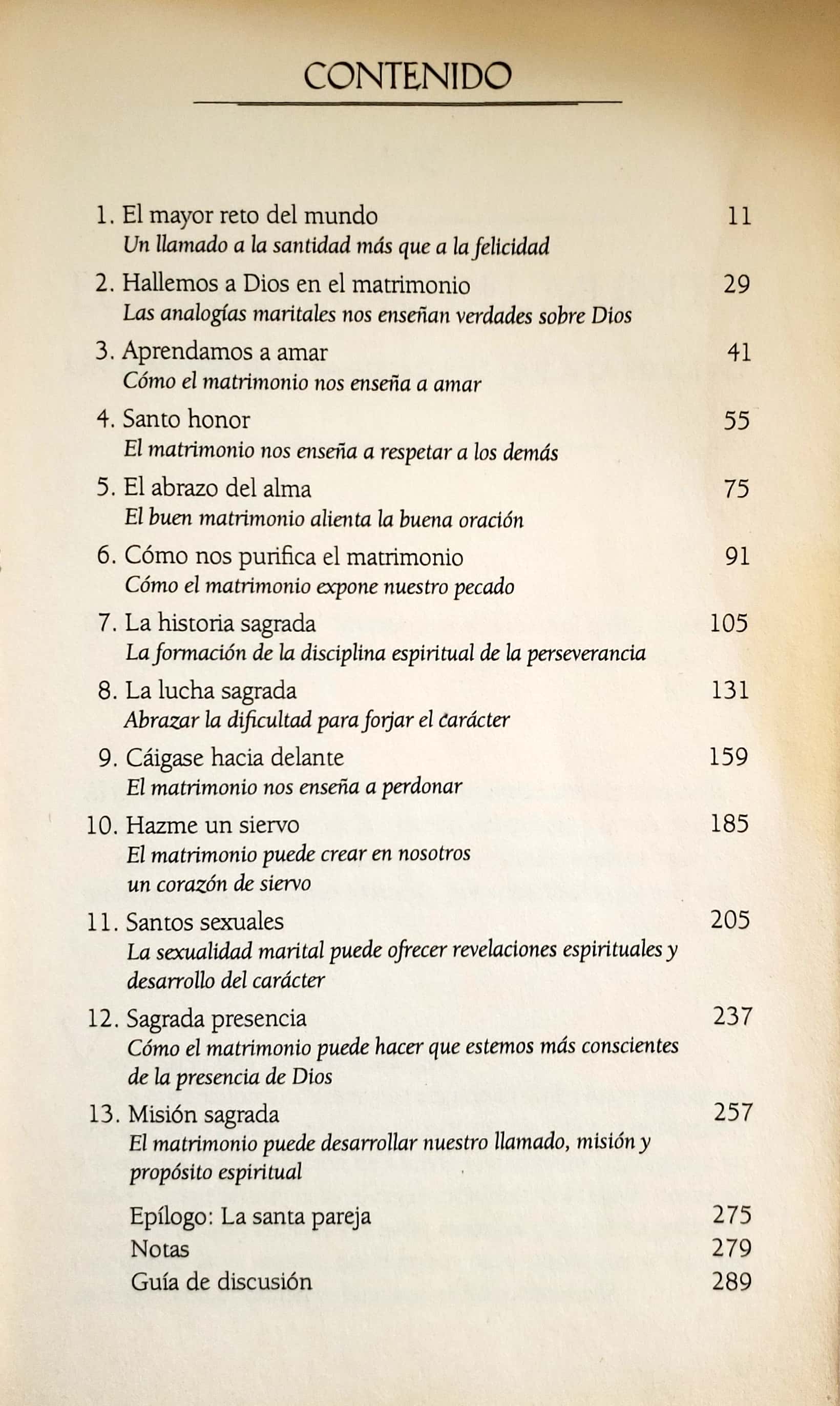 Este libro no le dice cómo mejorar su matrimonio sino que le muestra cómo su matrimonio puede ayudarle a profundizar su relación con Dios. Desde la práctica del perdón hasta el éxtasis de hacer el amor, así como la historia que usted y su cónyuge forman juntos, todo en su matrimonio está lleno del potencial para descubrir y revelar el carácter de Cristo.