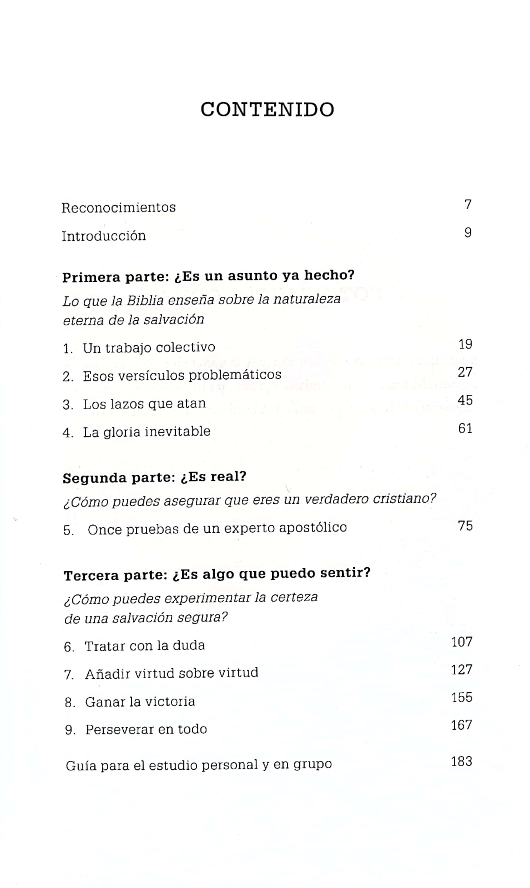 ¿Soy realmente salvo? ¿Voy a ir al cielo? Prguntas que los creyentes se han hecho en algunos momento; el autor cree que todo cristiano debe gozar de la realidad y seguridad de la salvación. El ibro contiene una guía de estudio con actividades.