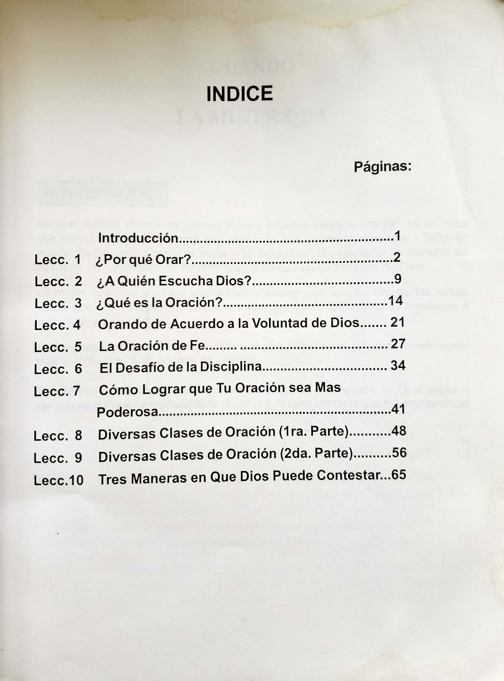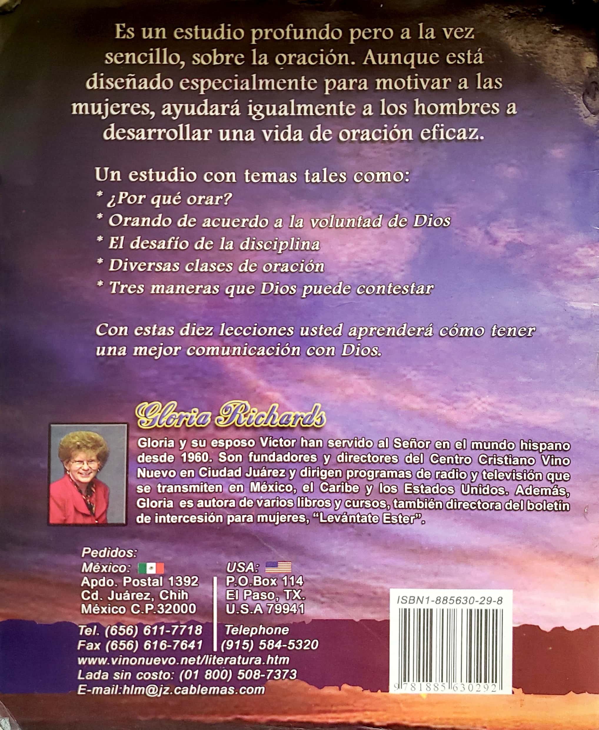 Es un estudio profundo pero a la vez sencillo, sobre la oración. Aunque está diseñado especialmente para motivar a las mujeres, ayudará igualmente a los hombres a desarrollar una vida de oración eficaz. Un estudio con temas tales como: ¿Por qué orar?, Orando de acuerdo a la voluntad de Dios, El desafío de la disciplina, Diversas clases de oración Tres maneras que Dios puede contestar. Con estas diez lecciones usted aprenderá cómo tener una mejor comunicación con Dios.