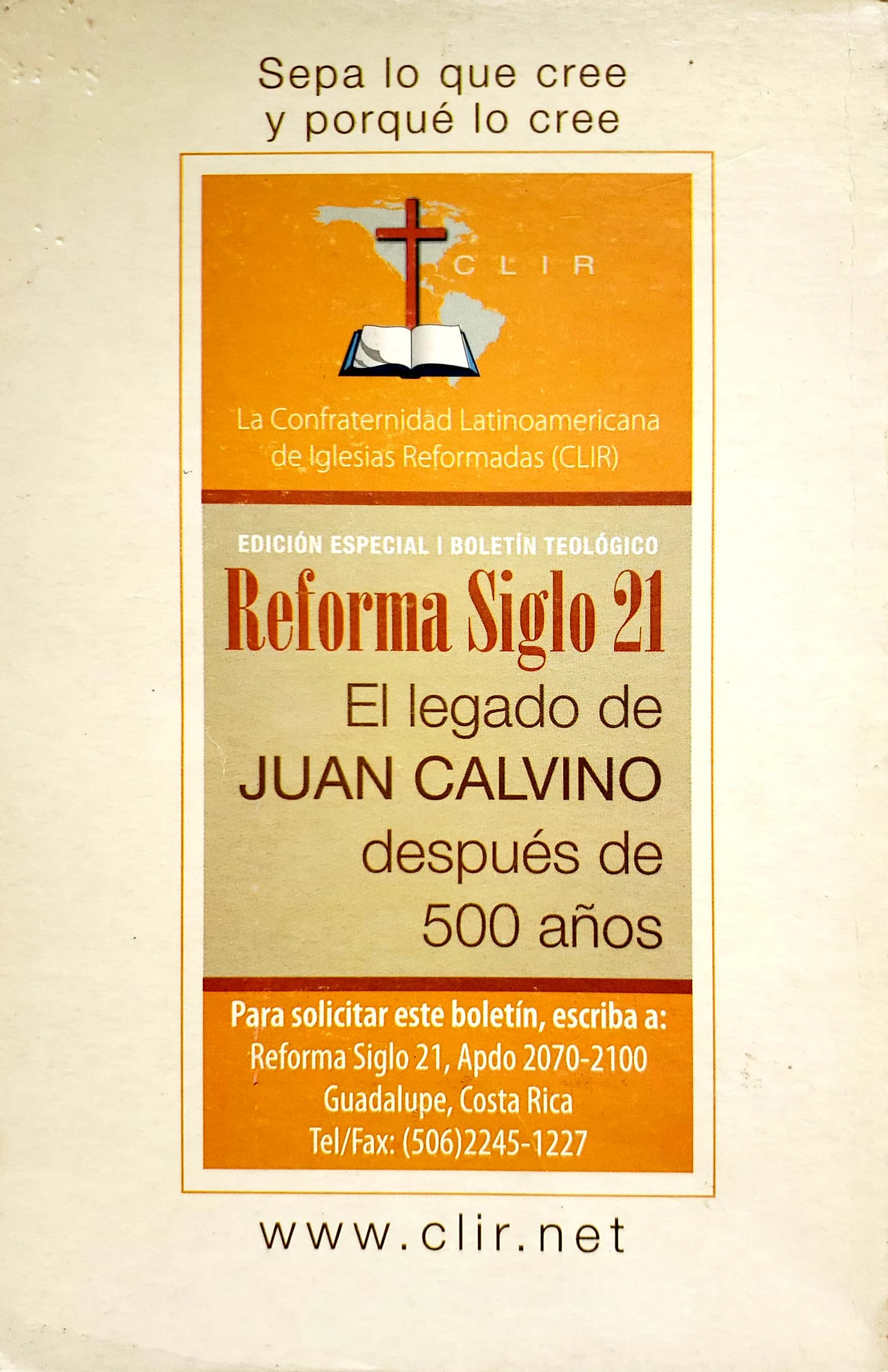 Boletín teológico de la Confraternidad Latinoamericana de Iglesias Reformadas. Corresponde al Volumen 7, número 2, Noviembre de 2005. Tema: Neo-paganismo y Cosmovisión bíblica. El propósito de este boletín es servir a la edificación de la iglesia de Cristo en promover la reflexión bíblica, teológica y práctica para Latinoamérica.
