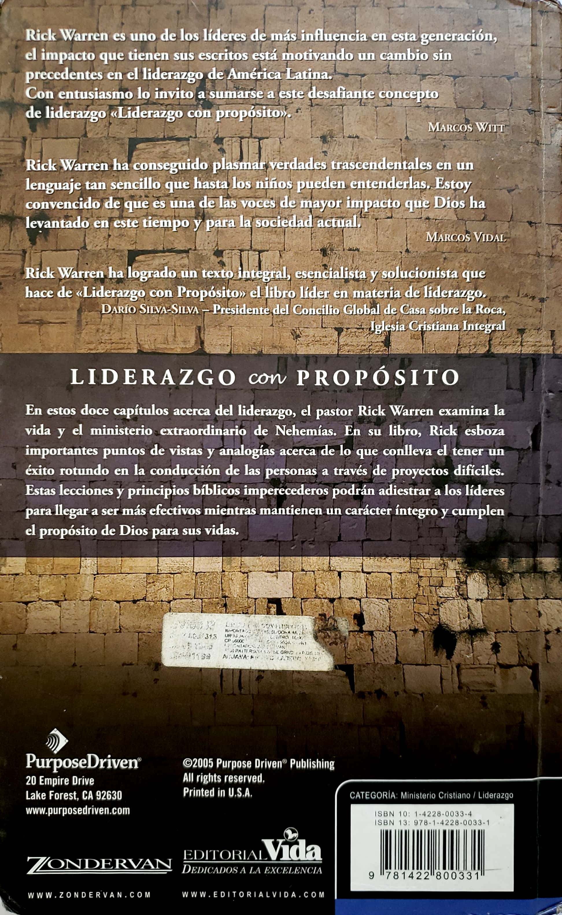 - Editorial: EEUU - Empire, Lake Forest, CA 92630. Purpose Driven Publishing. Año 2005