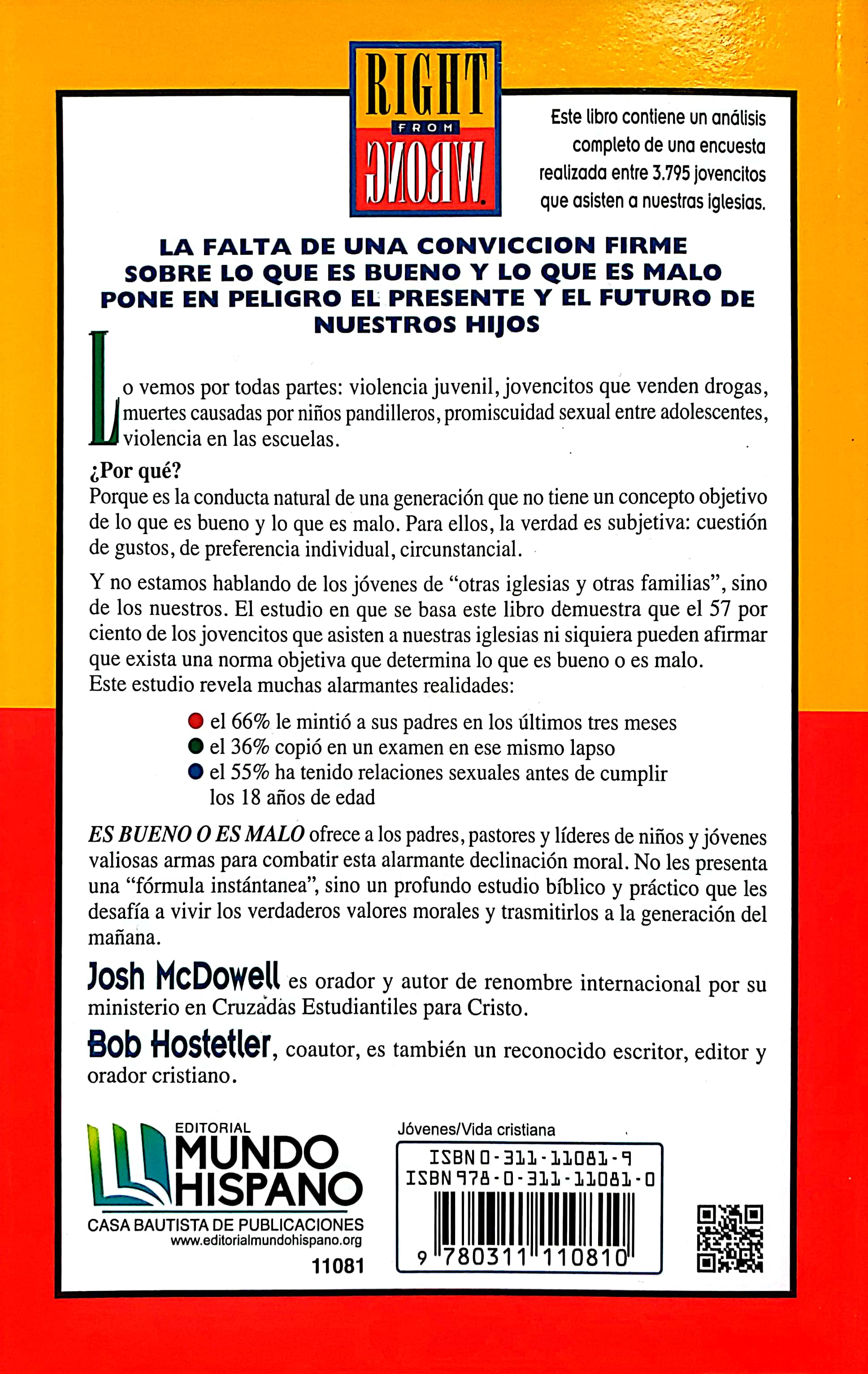 El libro “Es bueno o es malo” es lo que usted necesita saber para ayudar a los jóvenes a tomar decisiones correctas. Ofrece valiosas armas para combatir la alarmante declinación moral de nuestros días.