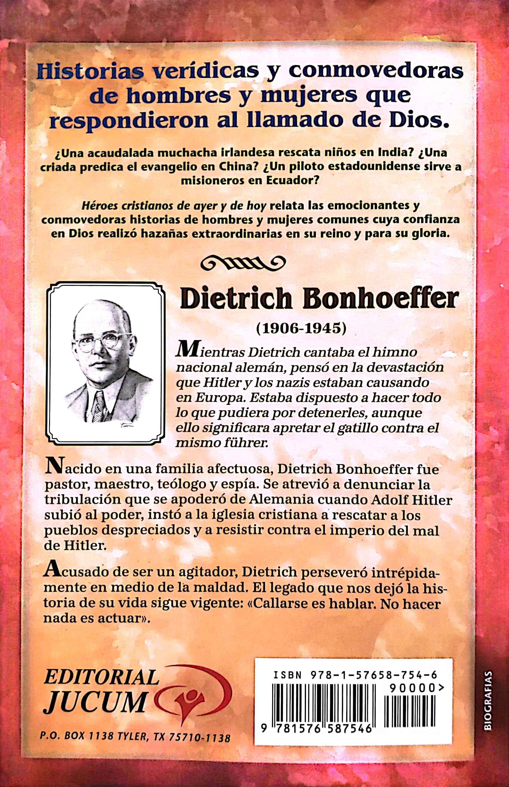 De la Serie: Héroes cristianos de ayer y hoy. Mientras Dietrich cantaba el himno nacional alemán, pensó en la devastación que Hitler, y los nazis estaban causando en Europa. Estaba dispuesto a hacer todo lo que pudiera por detenerles, aunque ello significara apretar el gatillo contra el mismo führer. Nacido en una familia afectuosa, Dietrich Bonhoeffer fue pastor, maestro teólogo y espía. Se atrevió a denunciar la tribulación que se apoderó de Alemania cuando Adolf Hitler subió al poder, instó a la iglesia cristiana a rescatar a los pueblos despreciados y a resistir contra el imperio del mal de Hitler. Acusado de ser un agitador. Dietrich perseveró intrépidamente en medio de la maldad. El legado que nos dejó la historia de su vida sigue vigente: Callarse es hablar. No hacer nada es actuar.