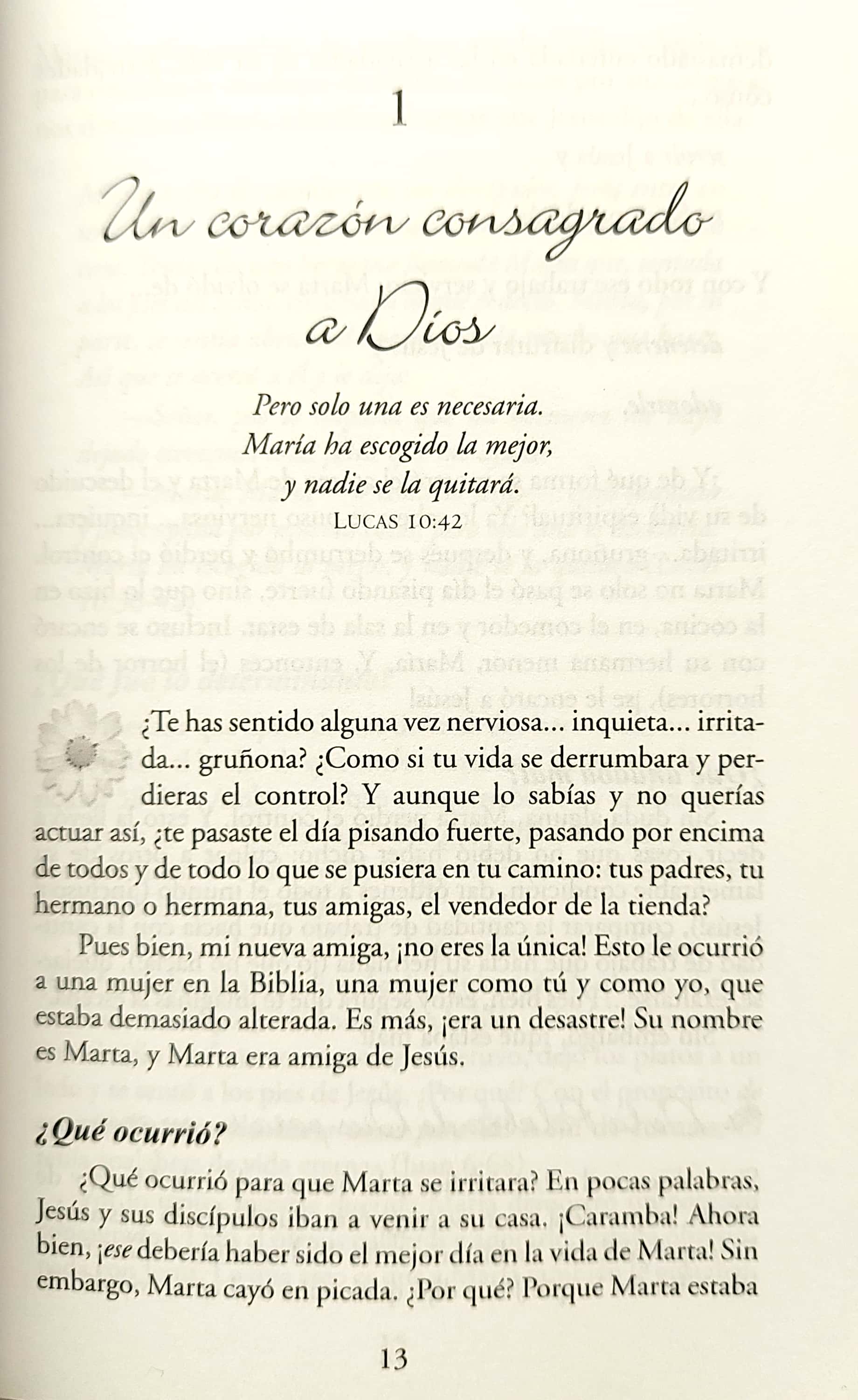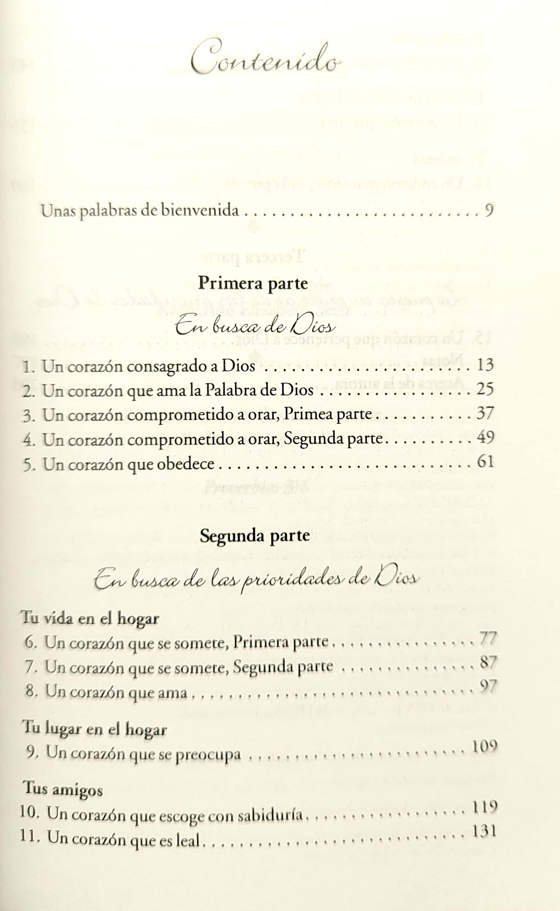 Guía para jóvenes sobre los amigos, la fe, la familia y el futuro. ¿Qué significa ir tras el corazón de Dios en tu vida diaria? Significa entender y seguir el plan perfecto de Dios en cuanto a varios aspectos. A medida que vayas leyendo, descubrirás que estás inmersa en la emocionante aventura de toda una vida: ¡la de convertirte en una mujer conforme al corazón de Dios! Te encantarán las secciones tituladas: Respuesta del corazón diseñadas en especial para ti, y los asuntos prácticos en Cosas que podemos hacer hoy te ayudarán a realizar progresos instantáneos en tu deseo de convertirte en una mujer piadosa.