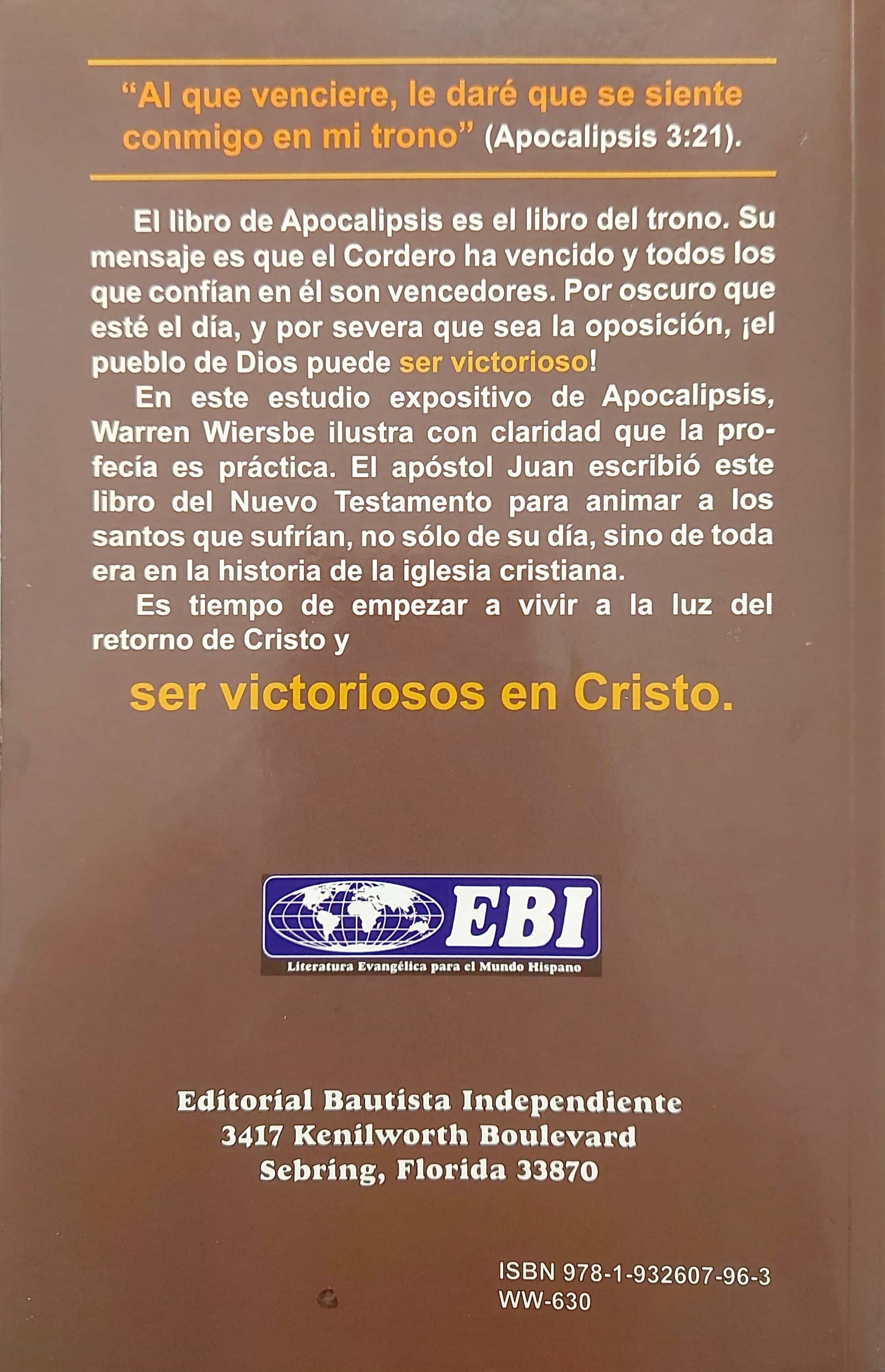 Estudio Expositivo del libro de Apocalipsis. Su mensaje es que el Cordero ha vencdo y todos los que confían en él son vencedores. Por oscuro que parezca este día, y por severa que sea la oposición, ¡el pueblo de Dios puede ser victorioso!
