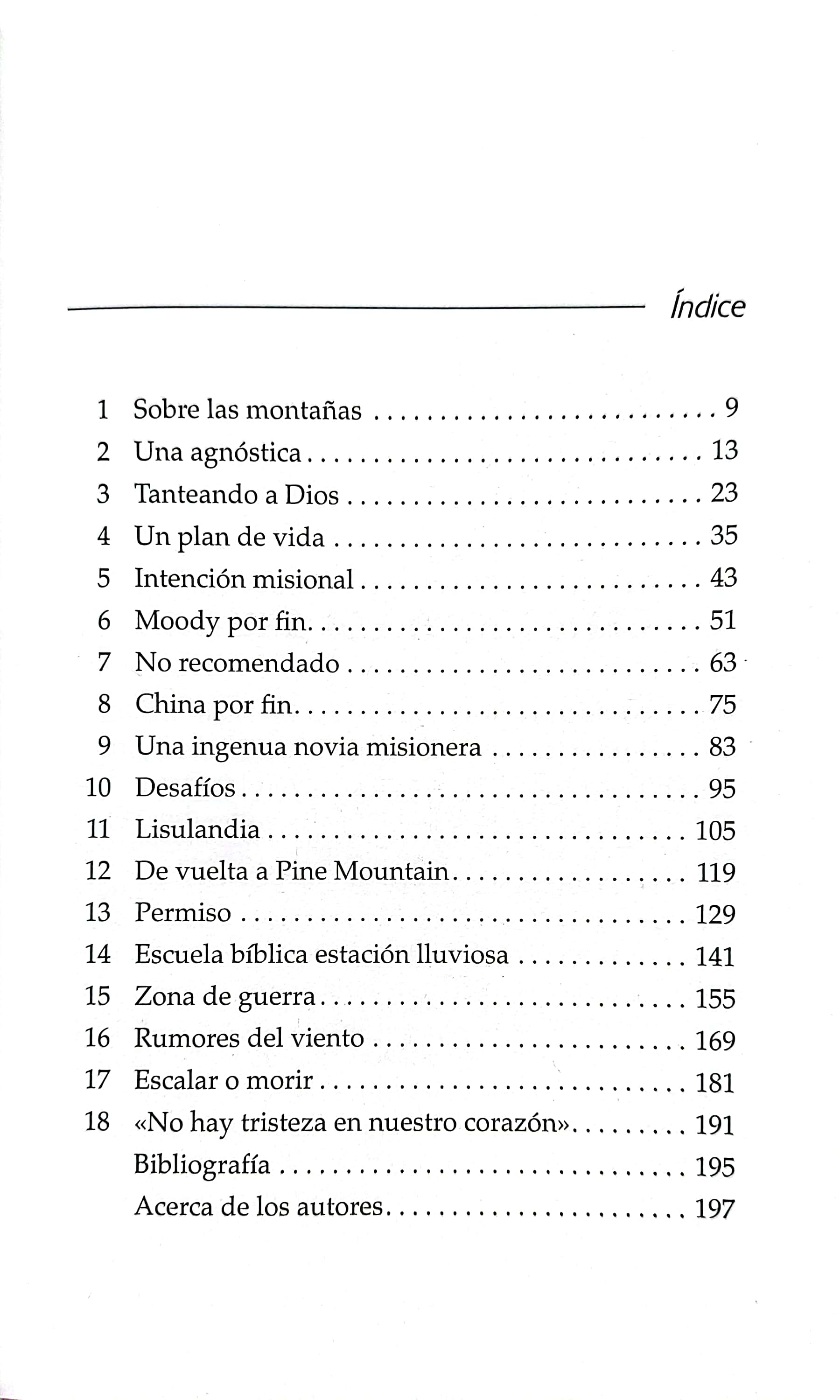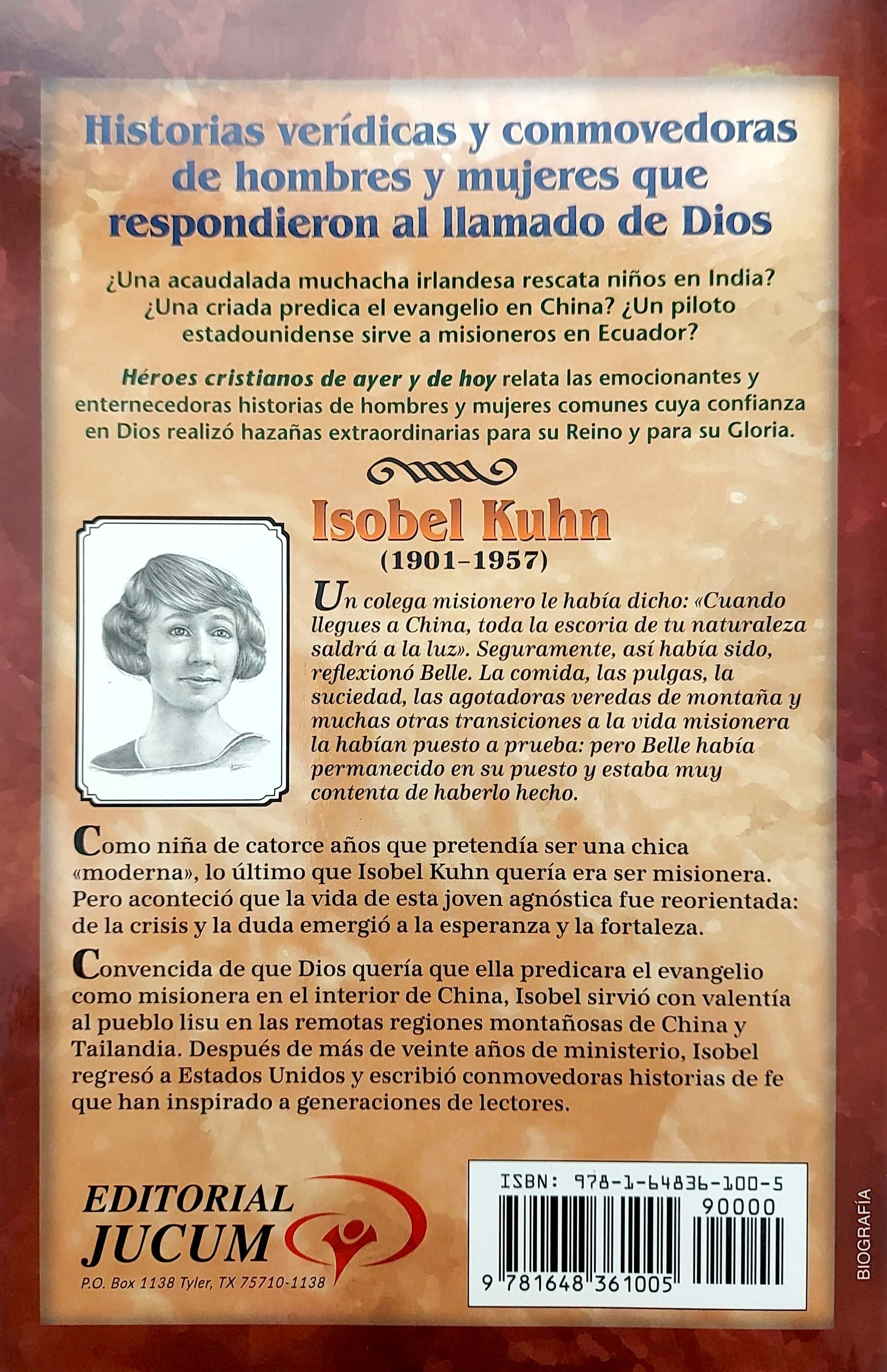 Este libro pertenece a la Colección Héroes cristianos de ayer y hoy. Un colega misionero le había dicho: «Cuando llegues a China, toda la escoria de tu naturaleza saldrá a la luz». Seguramente, así había sido, reflexionó Belle. La comida, las pulgas, la suciedad, las agotadoras veredas de montaña y muchas otras transiciones a la vida misionera la habían puesto a prueba: pero Belle había permanecido en su puesto y estaba muy contenta de haberlo hecho. Como niña de catorce años que pretendía ser una chica «moderna», lo último que Isobel Kuhn quería era ser misionera. Pero aconteció que la vida de esta joven agnóstica fue reorientada: de la crisis y la duda emergió a la esperanza y la fortaleza. Convencida de que Dios quería que ella predicara el evangelio como misionera en el interior de China, Isobel sirvió con valentía al pueblo lisu en las remotas regiones montañosas de China y Tailandia. Después de más de veinte años de ministerio, Isobel regresó a Estados Unidos y escribió conmovedoras historias de fe que han inspirado a generaciones de lectores.(1901-1957) .