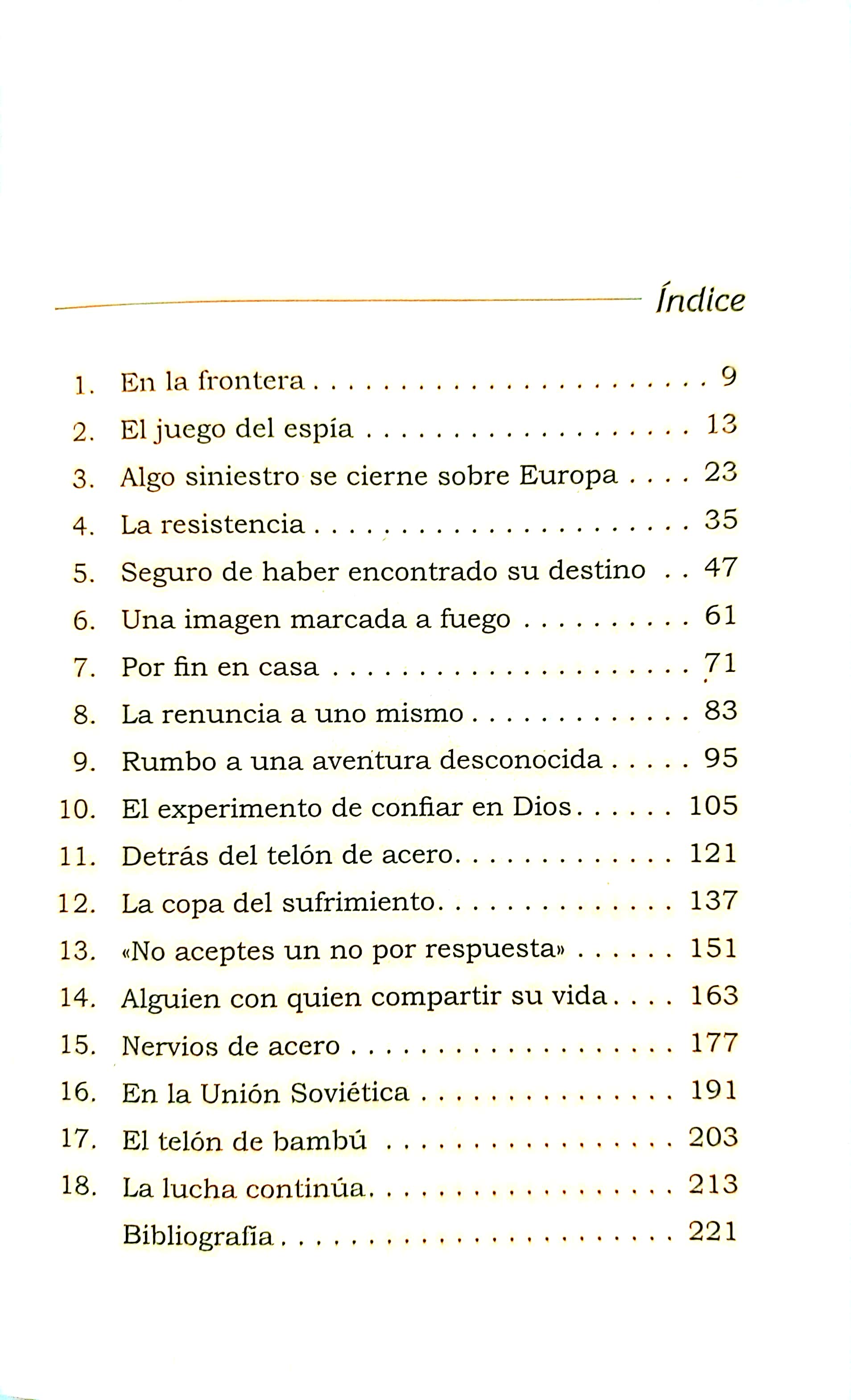 Este libro pertenece a la Colección Héroes cristianos de ayer y hoy. Una vez redimido por Dios, se transformó en un audaz mensajero de esperanza, logrando pasar de contrabando las Escrituras a través de fronteras cerradas y colaborando en la formación de los cristianos perseguidos que vivían tras el telón de acero. Hoy, el hermano Andrés y el ministerio de Puertas Abiertas continúan con su labor de hacer brillar la luz de Cristo en los lugares más tenebrosos de la Tierra.