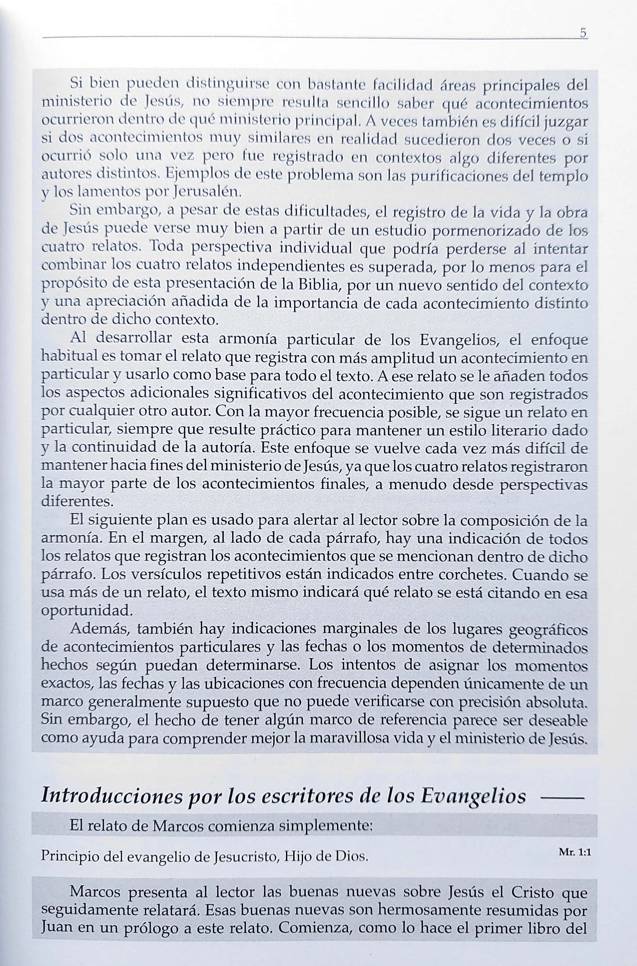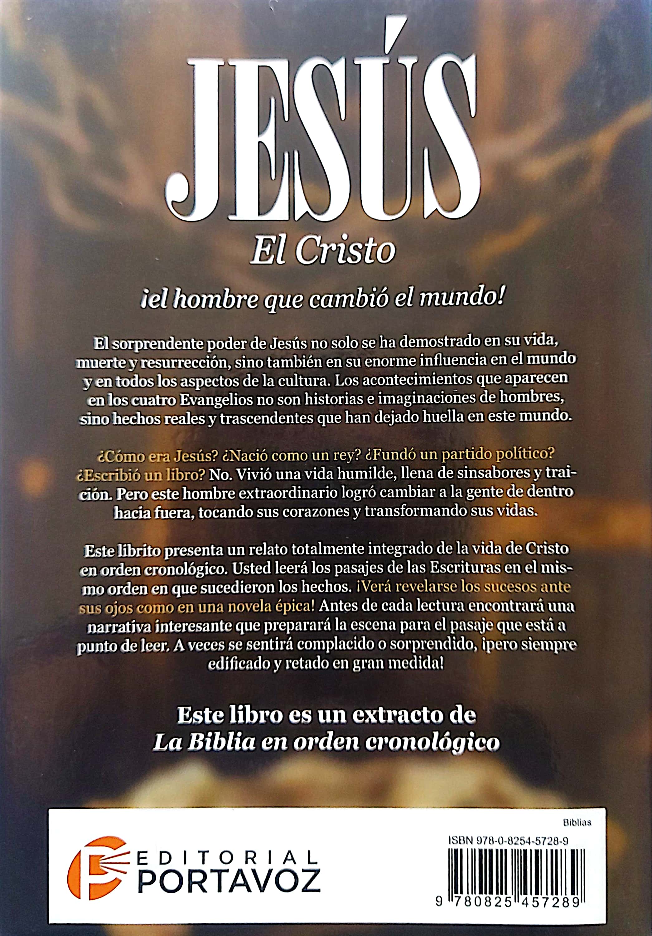 Este libro es un extracto de La Biblia en orden cronológico. El sorprendente poder de Jesús no solo se ha demostrado en su vida, muerte y resurrección, sino también en su enorme influencia en el mundo y en todos los aspectos de la cultura. Los acontecimientos que aparecen en los cuatro Evangelios no son historias e imaginaciones de hombres, sino hechos reales y trascendentes que han dejado huella en este mundo. ¿Cómo era Jesús? ¿Nació como un rey? ¿Fundó un partido político? ¿Escribió un libro? No. Vivió una vida humilde, llena de sinsabores y traición. Pero este hombre extraordinario logró cambiar a la gente de dentro hacia fuera, tocando sus corazones y transformando sus vidas. Este librito presenta un relato totalmente integrado de la vida de Cristo en orden cronológico. Usted leerá los pasajes de las Escrituras en el mismo orden en que sucedieron los hechos. ¡Verá revelarse los sucesos ante sus ojos como en una novela épica! Antes de cada lectura encontrará una narrativa interesante que preparará la escena para el pasaje que está a punto de leer. A veces se sentirá complacido o sorprendido, ¡pero siempre edificado y retado en gran medida!