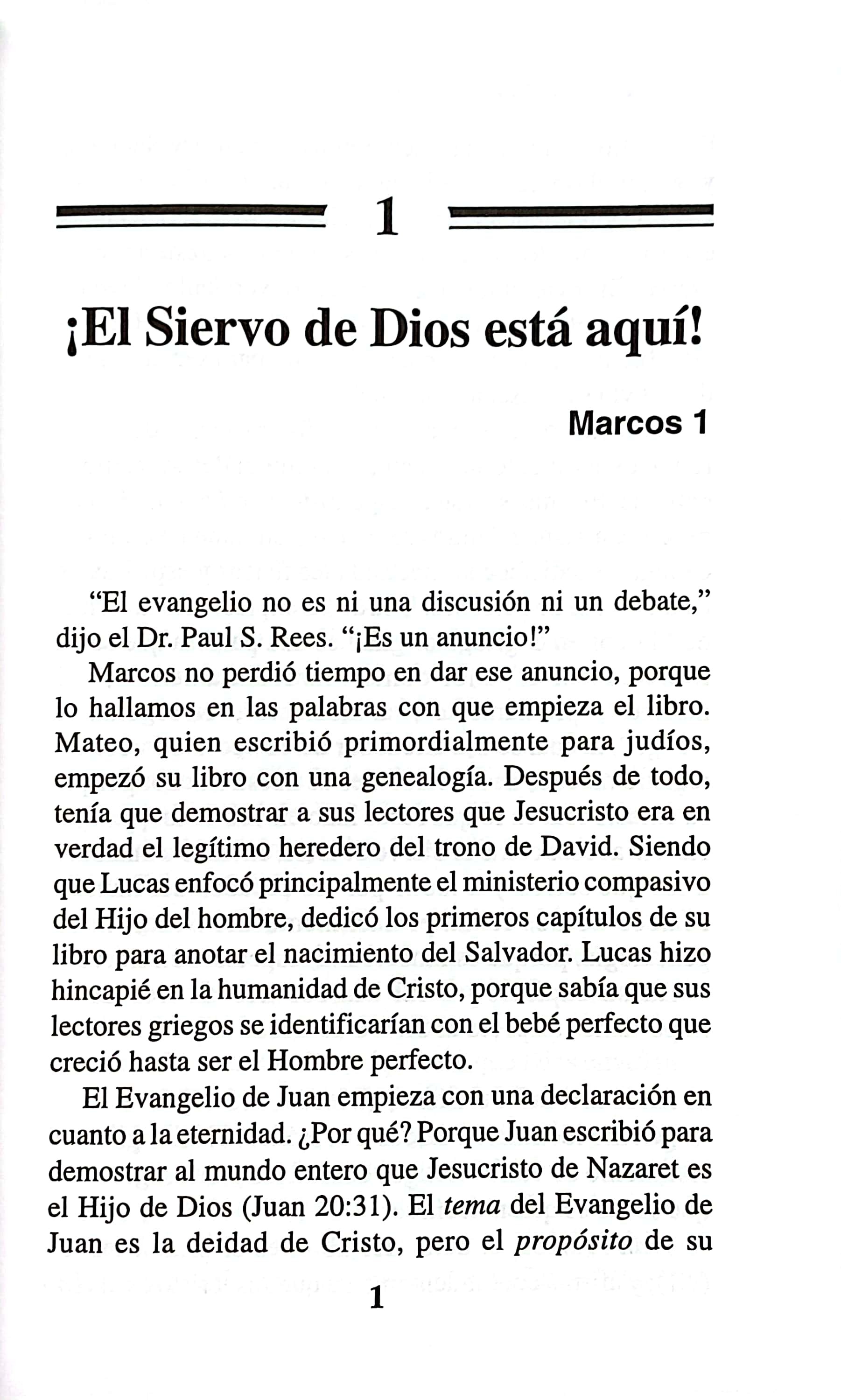 Este libro pertenece a la colección de comentarios bíblicos En Cristo. Marcos es el Evangelio perfecto para la gente de la era espacial, quienes están en continuo movimiento. En este estudio el Dr. Wiersbe enfoca a Jesucristo el Siervo, siempre en movimiento, siempre haciendo la voluntad del Padre y sirviendo a otros. Marcos es el Evangelio ideal para la gente atareada que requiere descubrir cómo hacer que su vida cuente para Dios. Estudiar el relado intensamente dramático que Marcos da de la vida y ministerio de Jesuscristo te ayudará a apreciarle como el Siervo ideal de Dios. Te sentirás morivado y animado en tu propio ministerio para el Señor... y a ser cada vez más Diligentes en Cristo.