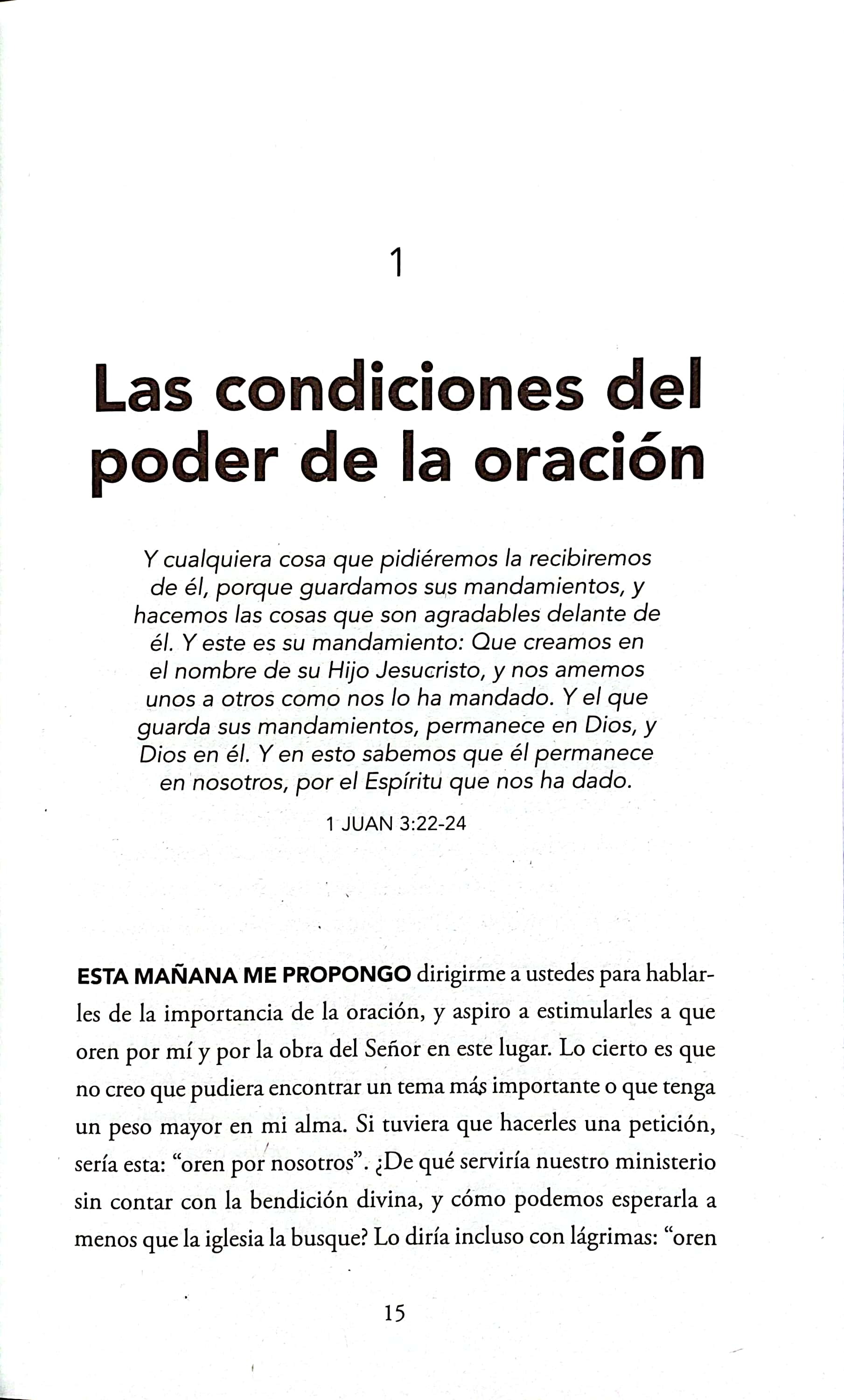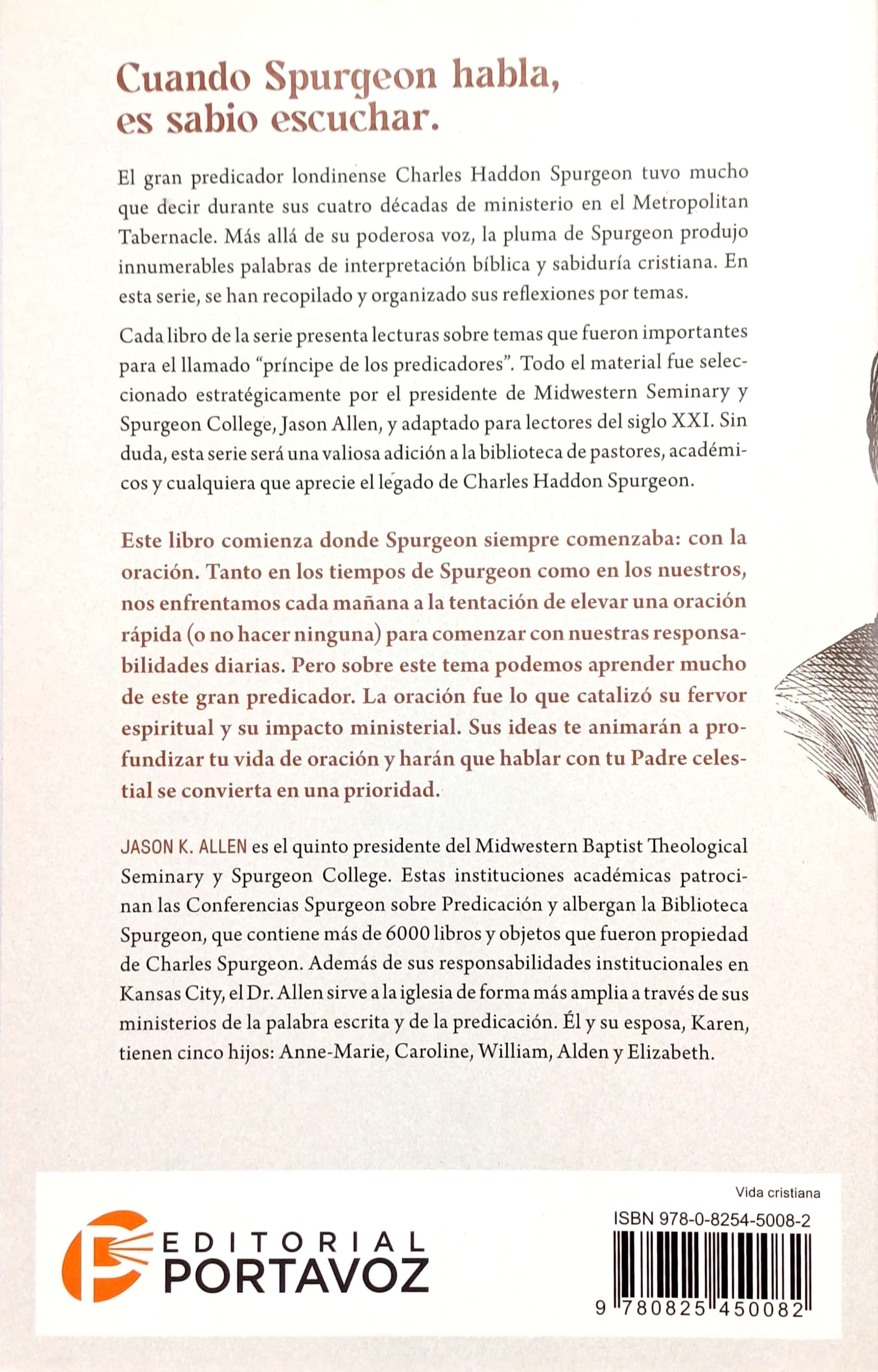 El gran predicador londinense Charles Haddon Spurgeon tuvo mucho que decir durante sus cuatro décadas de ministerio en el Metropolitan Tabernacle. Más allá de su poderosa voz, la pluma de Spurgeon produjo innumerables palabras de interpretación bíblica y sabiduría cristiana. En esta serie, se han recopilado y organizado sus reflexiones por temas. Este libro comienza donde Spurgeon siempre comenzaba: con la oración. Tanto en los tiempos de Spurgeon como en los nuestros, nos enfrentamos cada mañana a la tentación de elevar una oración rápida (o no hacer ninguna) para comenzar con nuestras responsabilidades diarias. Pero sobre este tema podemos aprender mucho de este gran predicador. La oración fue lo que catalizó su fervor espiritual y su impacto ministerial. Sus ideas te animarán a profundizar tu vida de oración y harán que hablar con tu Padre celestial se convierta en una prioridad.