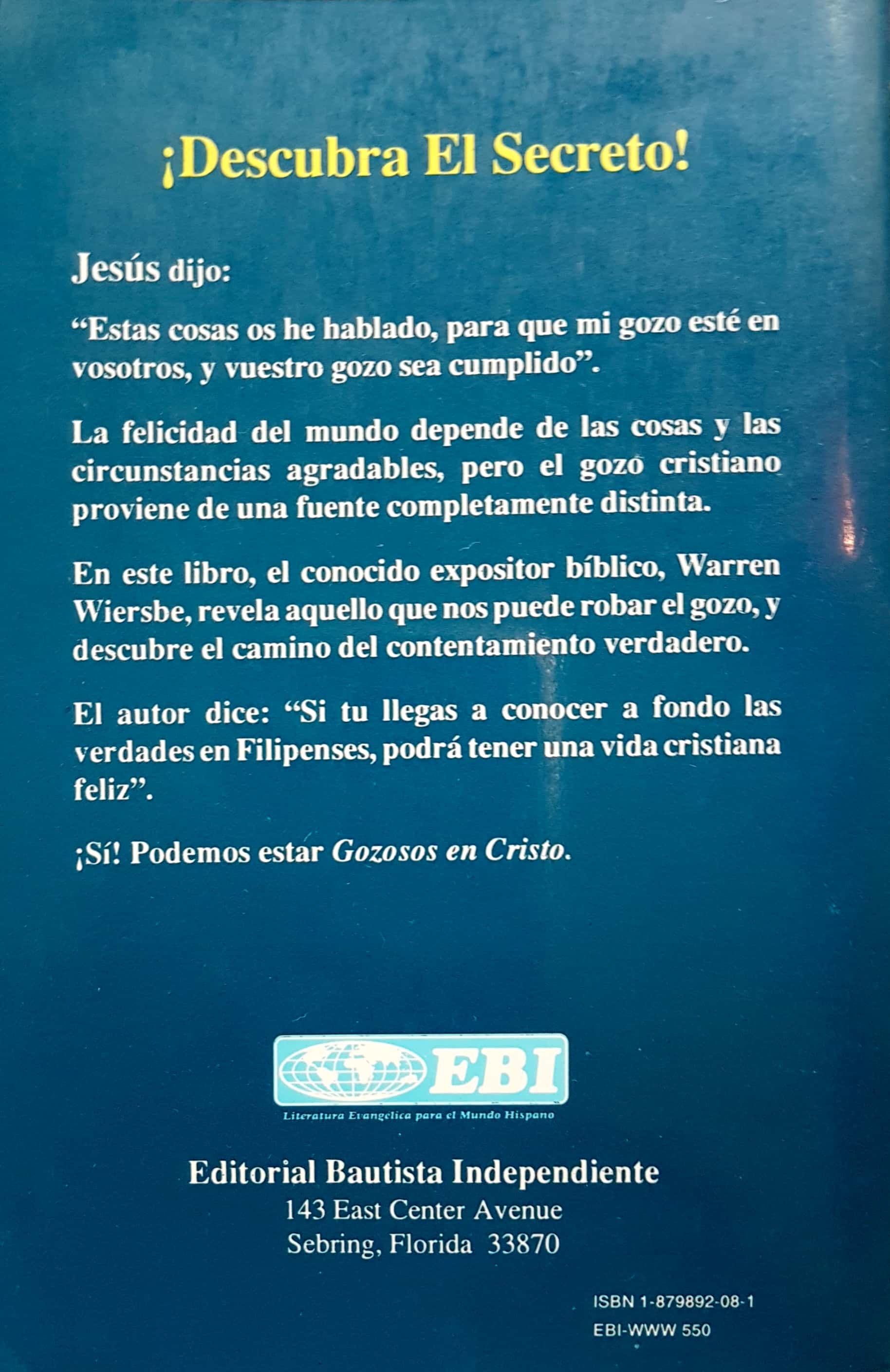 Estudio Expositivo de la Epístola a los Filipenses. En este libro el autor, revela aquello que nos puede robar el gozo, y descubrir el camino del contentamiento verdadero.