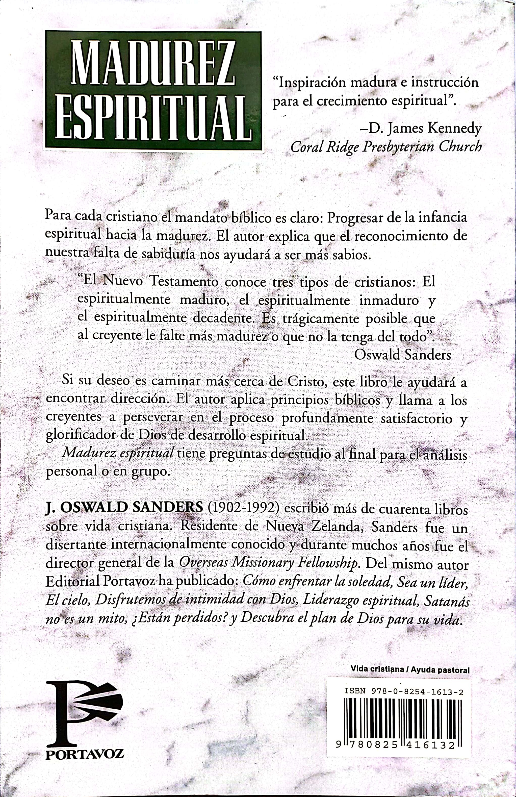Para cada cristiano el mandato bíblico es claro: Progresar de la infancia espiritual hacia la madurez. El autor explica que el reconocimiento de nuestra falta de sabiduría nos ayudará a ser más sabios. Si su deseo es caminar más cerca de Cristo, este libro le ayudará a encontrar dirección. El autor aplica principios bíblicos y llama a los creyentes a perseverar en el proceso profundamente satisfactorio y glorificador de Dios de desarrollo espiritual. Madurez espiritual tiene preguntas de estudio al final para el análisis personal o en grupo.