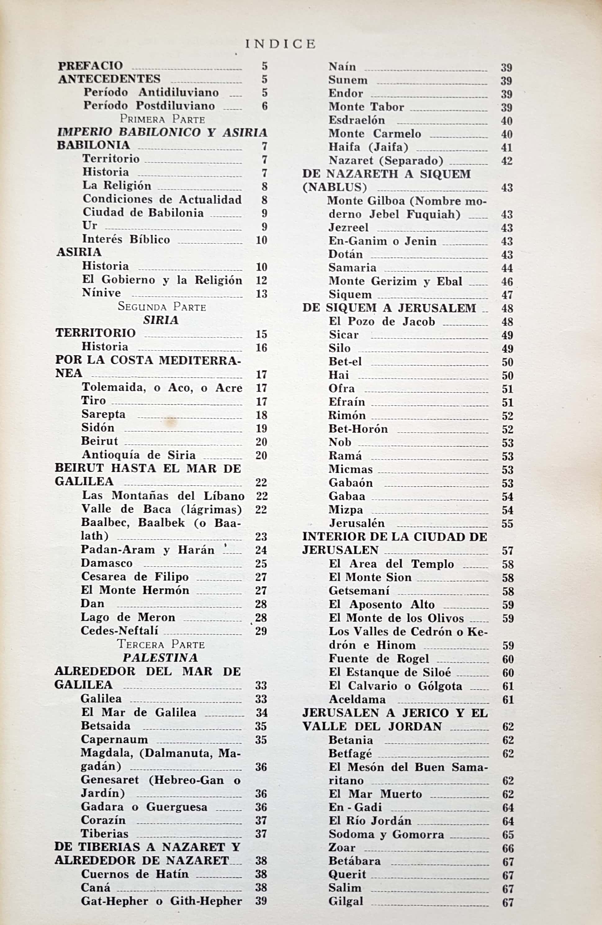 Lugares bíblicos con sus referencias. Ofrece una presentación novedosa de datos relacionados con las tierras bíblicas, es decir, trata de las divisiones políticas y geográficas de las ciudades, ríos y montañas, ruinas y lugares históricos; todo en orden alfabético. Para cada lugar presenta un resumen de su historia con las referencias bíblicas pertinentes.